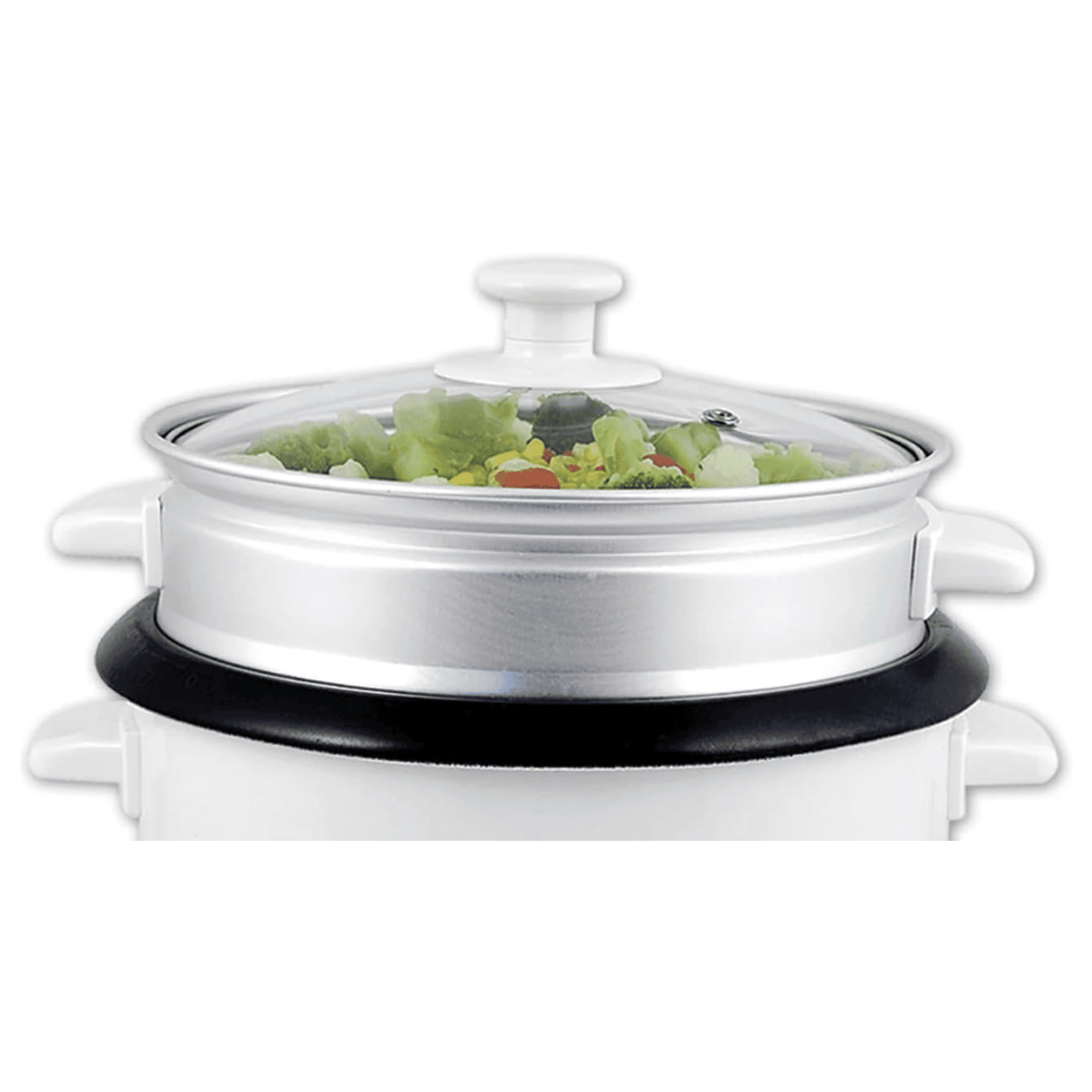 The Better Chef 5-Cup rice cooker comes with several essential accessories, including a rice paddle, food steamer attachment, and measuring cup, ensuring convenience in meal preparation. Its removable non-stick bowl facilitates easy cleanup after use, enhancing user convenience. With the ability to keep rice warm for hours, it ensures that your rice remains fresh and ready to serve whenever you're ready. Safety features include a cool-touch exterior and handles, preventing burns by keeping the heat contained within. This versatile appliance can cook various types of rice, from long grain to wild rice, catering to different preferences. It can cook 5 cups of rice, yielding 10 cups of cooked rice, making it suitable for small to medium-sized families. Additionally, its see-through lid allows you to monitor the cooking progress without needing to lift the lid.