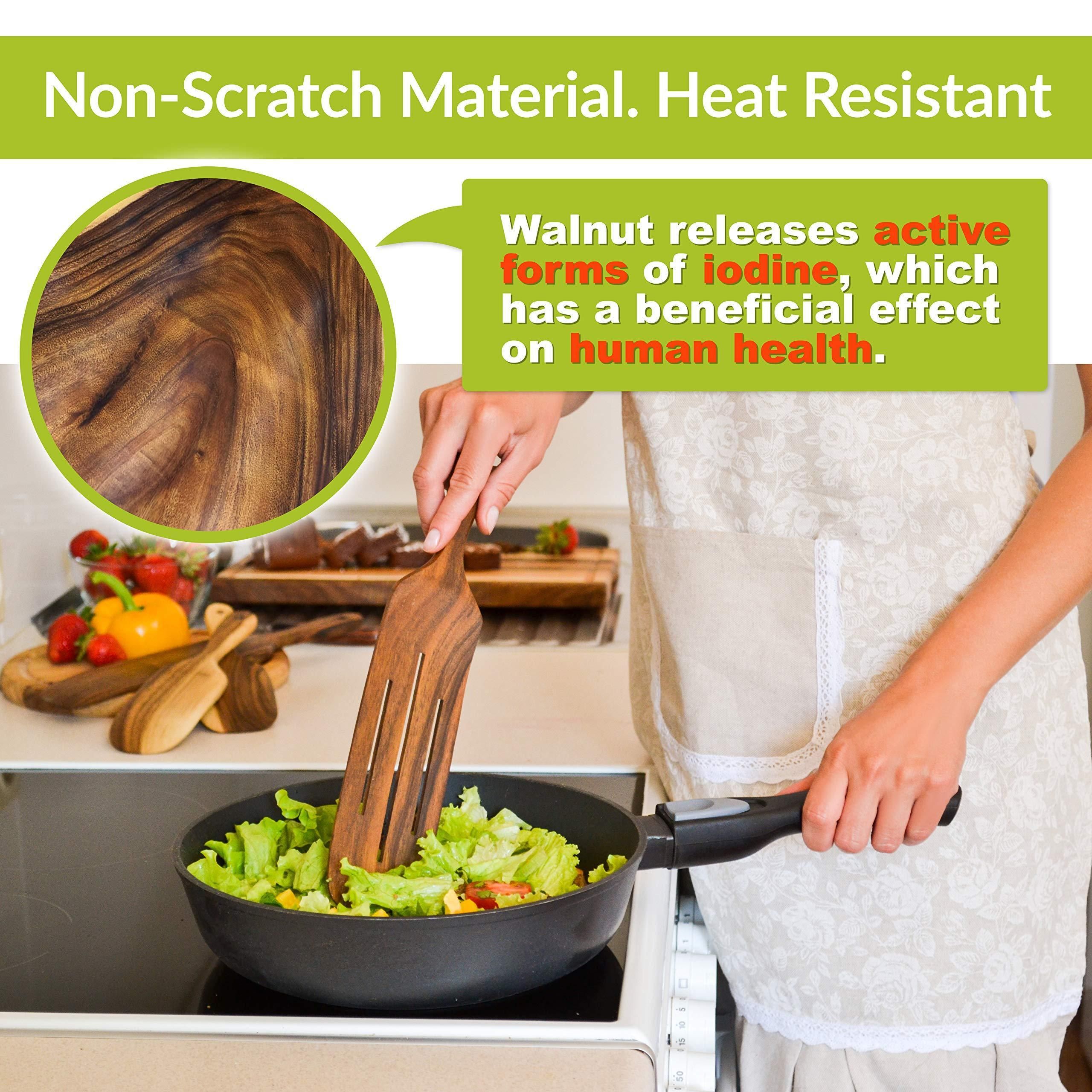 Home > Walnut Wood Wooden Spoons for Cooking Kitchen Utensils Spatula Set Spurtle Supplies Set of 4 Pcs