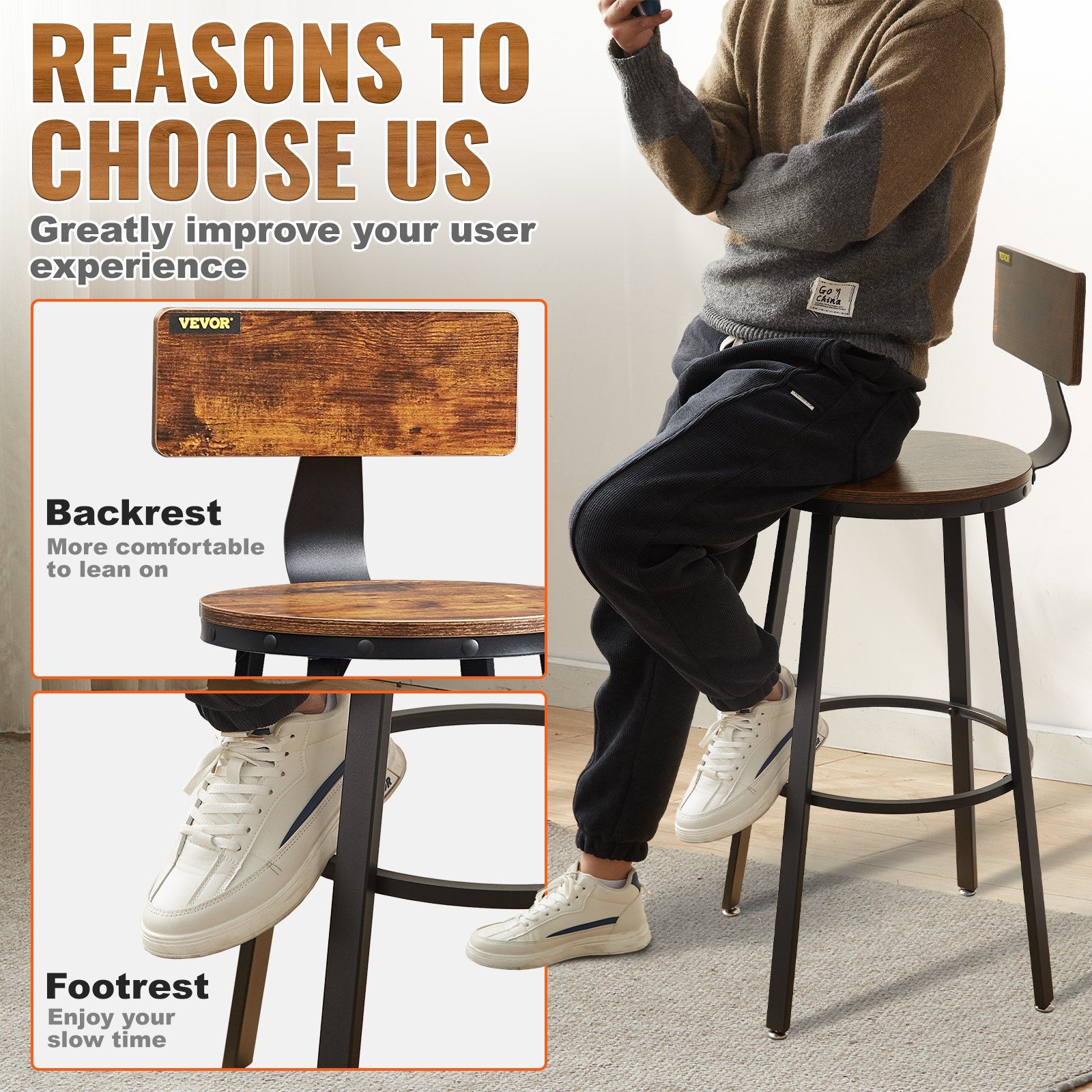 5.Assemble in No Time: Get ready to comfortably enjoy simple construction, clear instructions, and complete installation tools. It will only take a little of your time to assemble these 2 kitchen bar stools. The smooth nature of the wooden surface also makes cleaning it easier than ever! Seat your guests in comfort and style with VEVOR's rustic bar stools.