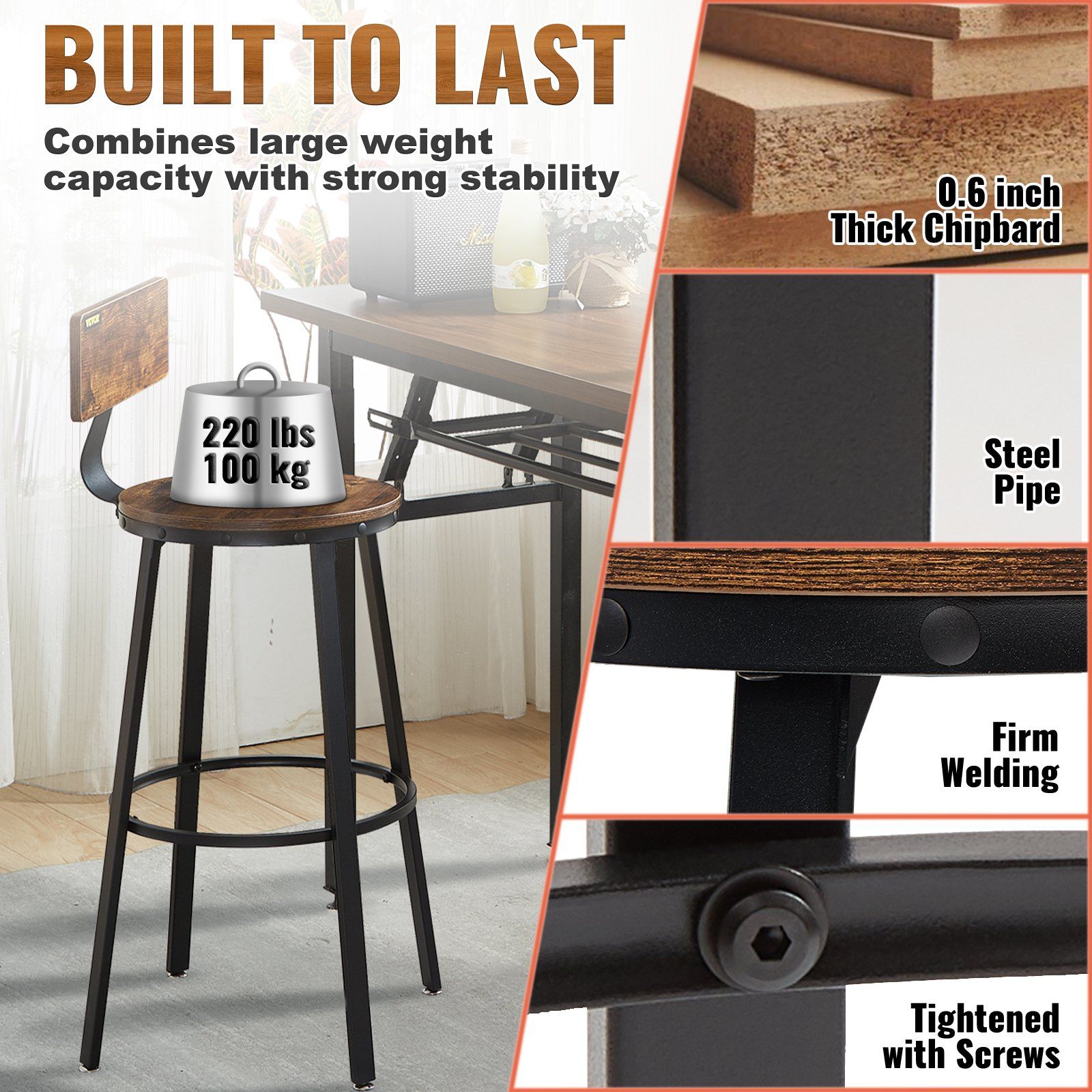 If you are looking for durable and compact bar stools for your place, then you are in luck! We got what you need! Each stool is composed of a firmly-welded steel frame, thickened MDF board, and tightly connected backrest & footrest. Its sleek rustic wood and black colors add a classic touch to any setting. It can be used at home, in bars, restaurants, and other commercial establishments. Create the perfect aesthetic and set the mood right with VEVOR!