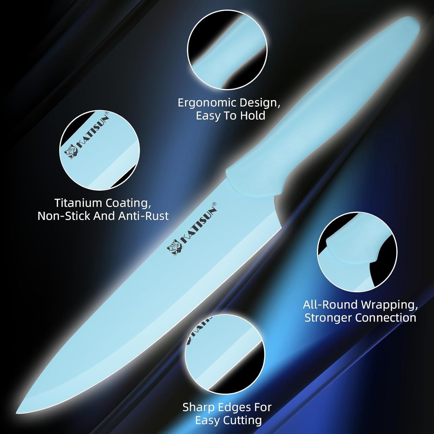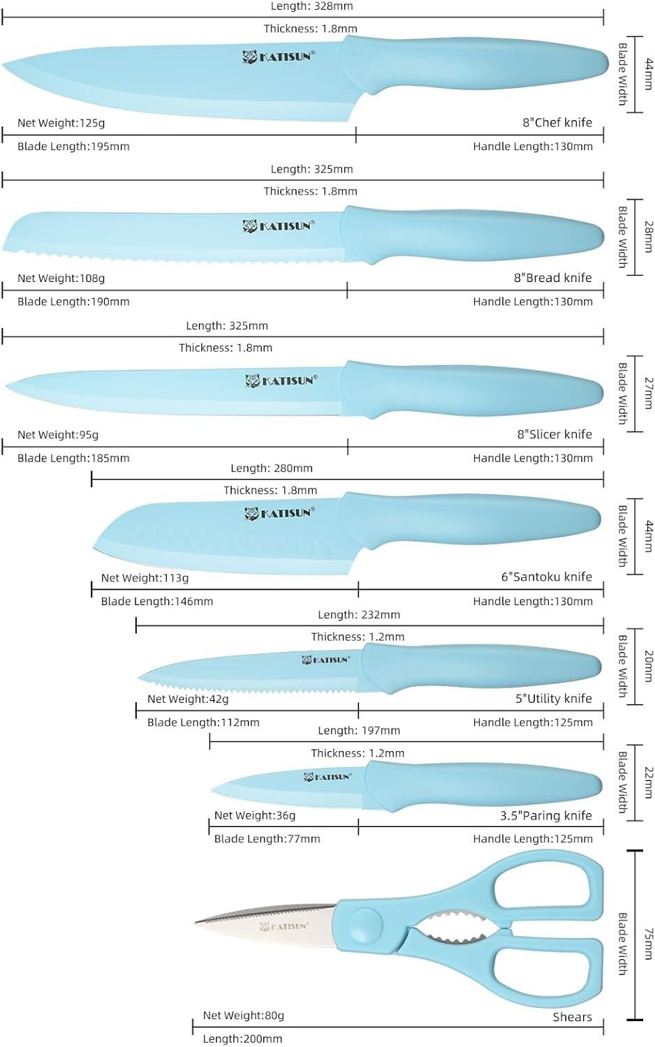 Home > Kitchen Knife Set with Guards, 13 Piece Blue Coated Stainless Steel Boxed Knives Set, Anti-Rust and Dishwasher Safe
