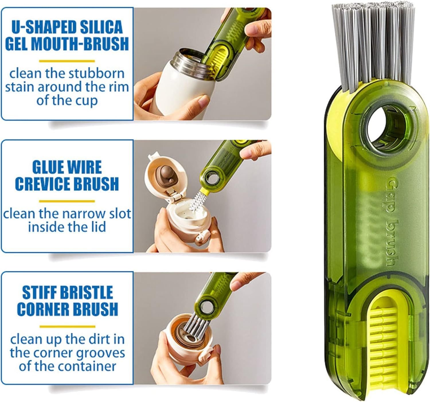 Material: These portable cleaning brushes are made of high-quality ABS+PP+PET+silica, sturdy and durable, washable and safe, not easy to break, and can withstand 80 degrees Celsius, which can serve you for a long time.3-in-1 Cleaning Brush: ①U-shaped brush: Match the cup mouth to clean stubborn stains around the cup mouth. ② Corner brush with hard bristles: Remove the dirt in the corner groove of the container. The bottle mouth cleaning brush can be used to clean.③ Gap Brush: Clean the narrow grooves on the inner wall of the cup cover.Thoughtful Design: Rotated 180° and swapped, easy to change, with hanging holes, small and fast,can be hung up when not in use,keep cleaning and convenient storage.Easy to Clean: These 3 in 1 tiny multifunctional cleaning brushes is gentle on any surface and will not harm your household cleaning. . The brush is strong in decontamination and easy to clean, just rinse with water, and dry quickly.And it specializes in washing deep grooves, gaps, and cornersWide Application: Suitable for all cups and bottles, such as cups, glasses, milk bottles, wine glasses, tea cups, mugs, thermos cup lids, etc. It can also be used for kettles, kettle lids, plates,sports cups,pacifiers, etc.