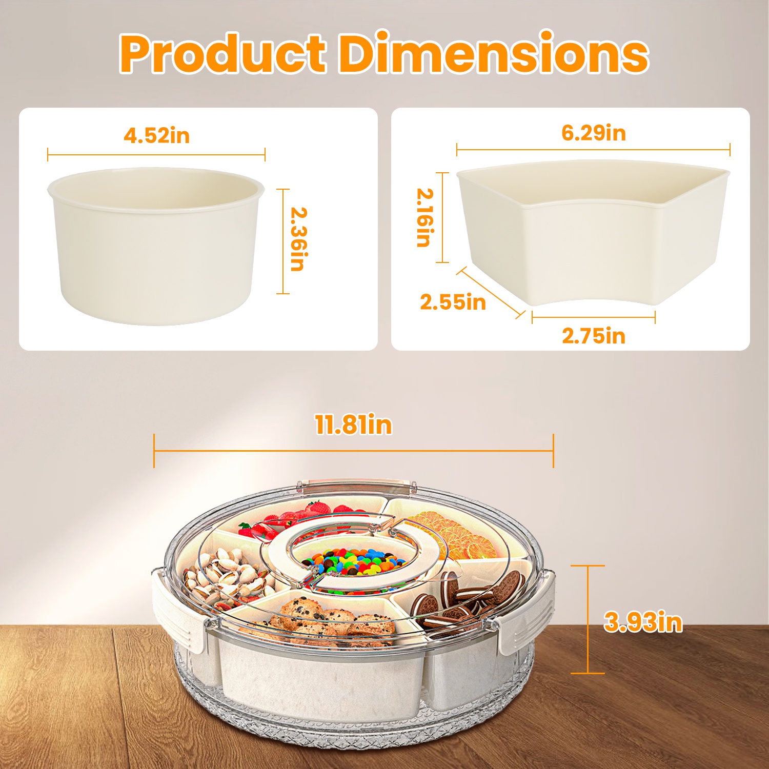 Home > 2Pcs Divided Serving Tray with Lid and Handle 360° Rotatable Snack Box Container with 6 Dividers Clear Portable Snack Platters for Fruit Candy Nut Sna