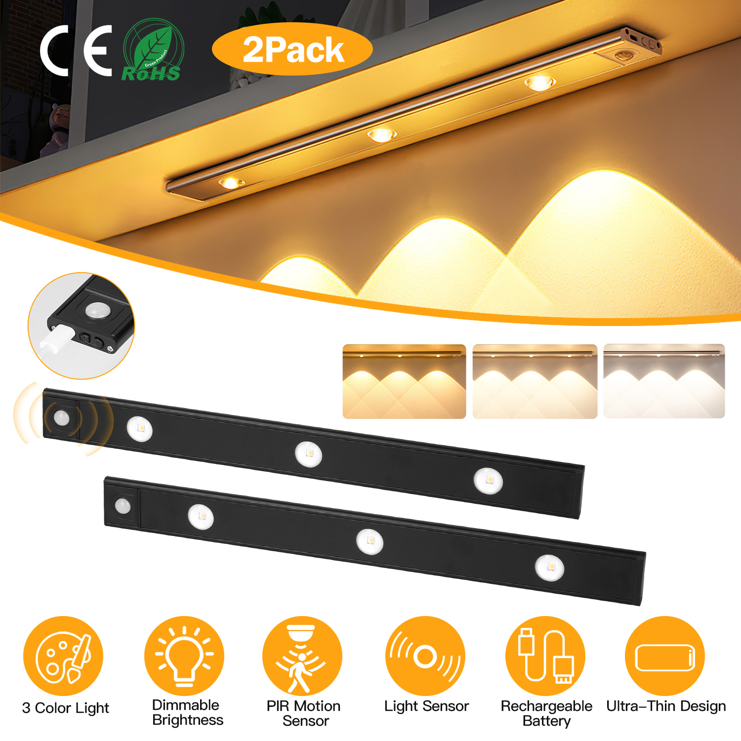 2Pack Rechargeable Cabinet Light Motion Sensor Light Cordless LED Closet Lamp 3 Colors Dimmable Light for Kitchen Cabinet